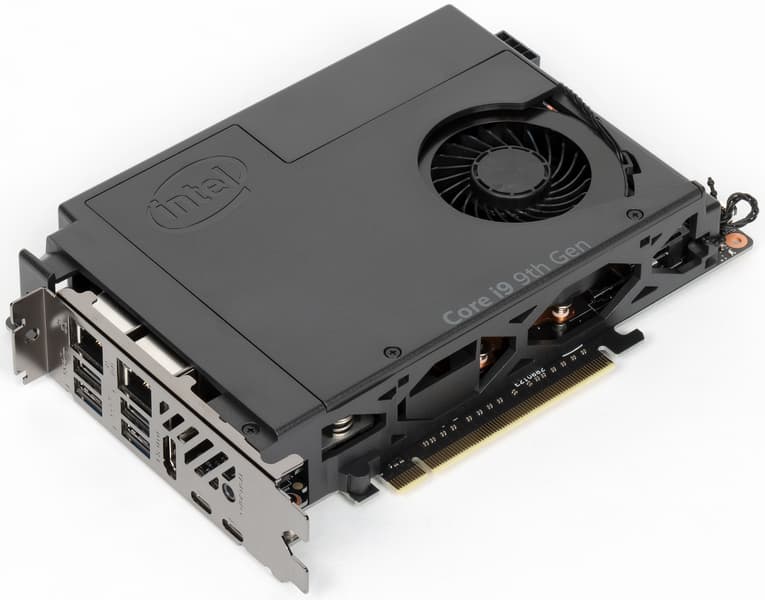 Среди мини-ПК Intel NUC есть модели на основе Compute Element. Это отдельная плата с интерфейсом PCIe, на которой размещены процессор, чипсет и слоты для оперативной памяти. Недавно мы тестировали такой мини-ПК с CPU Core i9-9980HK.