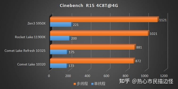 Однако источник решил сделать материал интереснее и сравнил не только процессоры, но и архитектуры. Для этого к процессорам Core i3-10320 (Comet Lake) и Core i3-10325 (Comet Lake Refresh) были добавлены Core i9-11900K (Cypress Cove) и Ryzen 9 5950X (Zen 3). При этом все процессоры работали на частоте 4 ГГц, и у всех были активны лишь по четыре ядра.