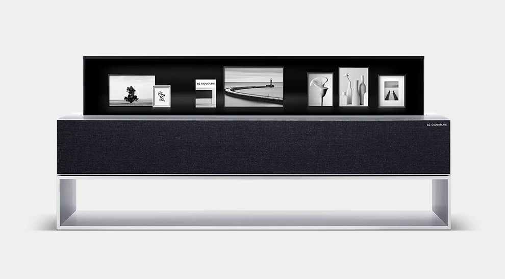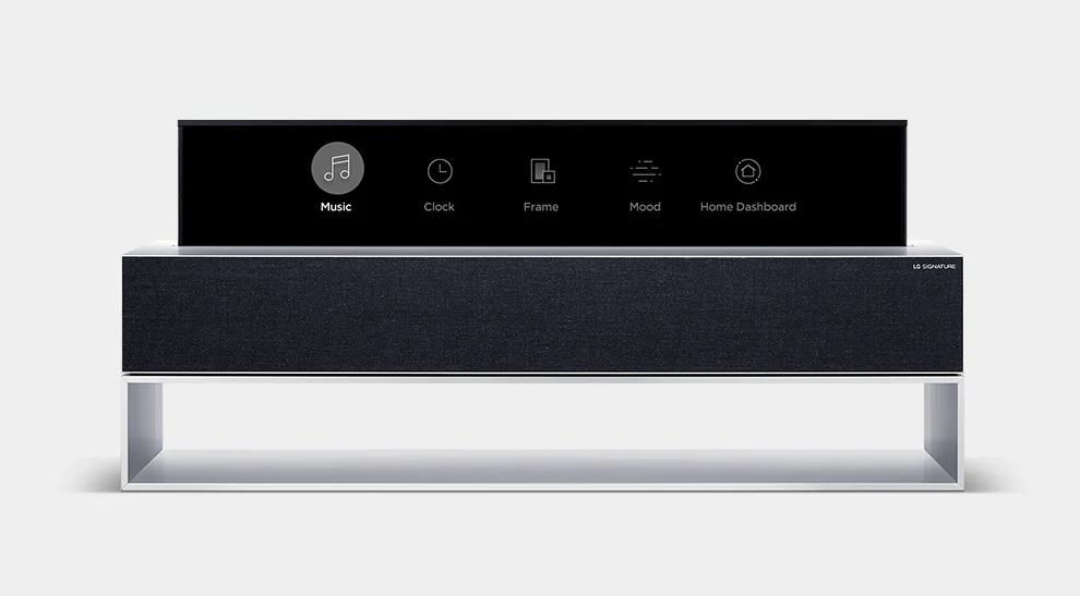 У модели предусмотрен 65-дюймовый экран OLED, который может убираться частично или полностью в базовый модуль, в котором также размещена звуковая система.