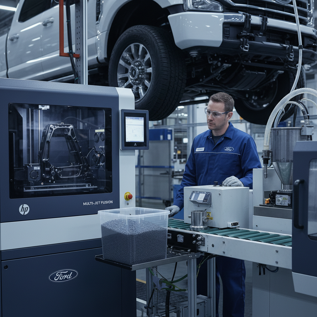 Компания Ford сообщила, что сделала очередной шаг на пути к своей цели — изготавливать машины по полностью безотходной технологии. Часть деталей для автомобилей Ford уже сейчас изготавливается методом 3D-печати на более чем шестидесяти 3D-принтерах, закупленных у HP. Достоинством этой технологии является малое количество отходов. Однако отходы все-таки есть. Совместно с HP удалось разработать технологию их повторного использования. Отходы перерабатываются, гранулируются и используются для литья под давлением.