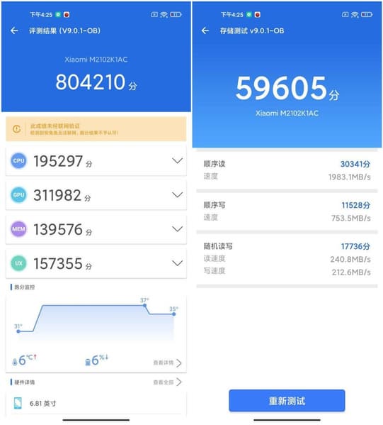 В социальной сети Weibo уже стали появляться тесты новых флагманских смартфонов Xiaomi Mi 11 Pro и Mi 11 Ultra. На скриншоте ниже можно увидеть как раз результаты теста производительности Mi 11 Pro в AnTuTu, а также тесты встроенной флеш-памяти.