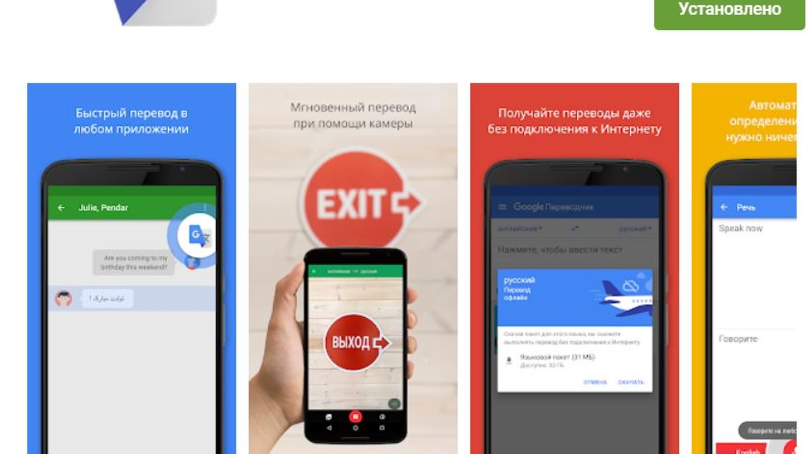 Очередное приложение из каталога Google Play достигло отметки в миллиард скачиваний. Это Переводчик Google — небольшая программа, поддерживающая 108 языков. При загруженных в память смартфона языковых пакетах она позволяет переводить с 59 языков и обратно без подключения к Сети. Также поддерживается перевод текста на изображениях или фотографиях (с 90 языков) и автоматический перевод речи с 70 языков и обратно.