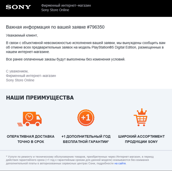 Несостоявшиеся покупатели жалуются в социальных сетях о том, что в официальном российском онлайн-магазине Sony Store отменены их предзаказы. Причём сделала это Sony без каких-либо предупреждений.