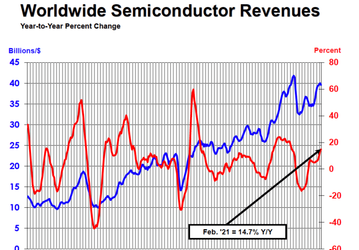 В этом феврале мировые продажи полупроводниковой продукции выросли на 14,7% по сравнению с февралём прошлого года