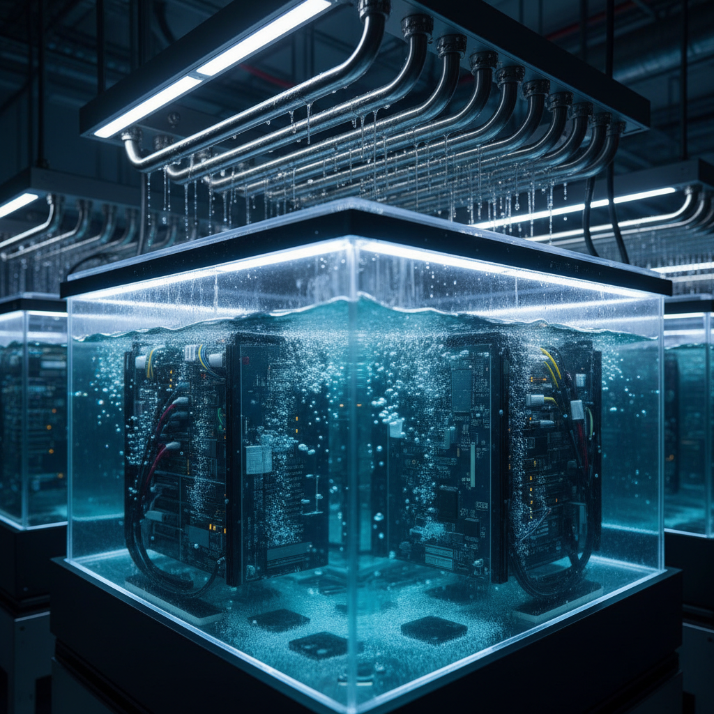 Компания Microsoft испытывают новую систему охлаждения серверов для своих центров обработки данных. В этой системе охлаждения используется погружение серверов в охлаждающую жидкость. Нагреваясь, жидкость кипит и испаряется, за счёт чего происходит отвод тепла. Далее пар конденсируется, и жидкость снова попадает в ёмкость с серверами.