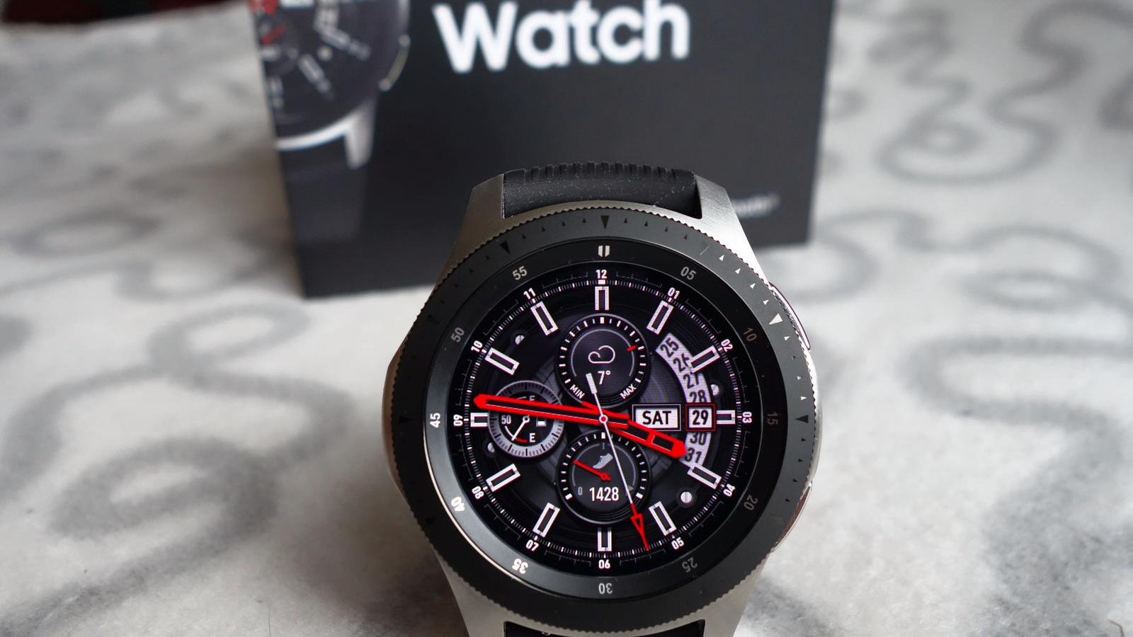 Часы Galaxy Watch получили вращающийся безель, а также дисплей Super AMOLED разрешением 360 x 360 пикселей. Они также оснащены двухъядерной однокристальной системой Exynos 9110, функцией непрерывного мониторинга сердечного ритма, датчиком GPS и длительным временем работы без подзарядки.