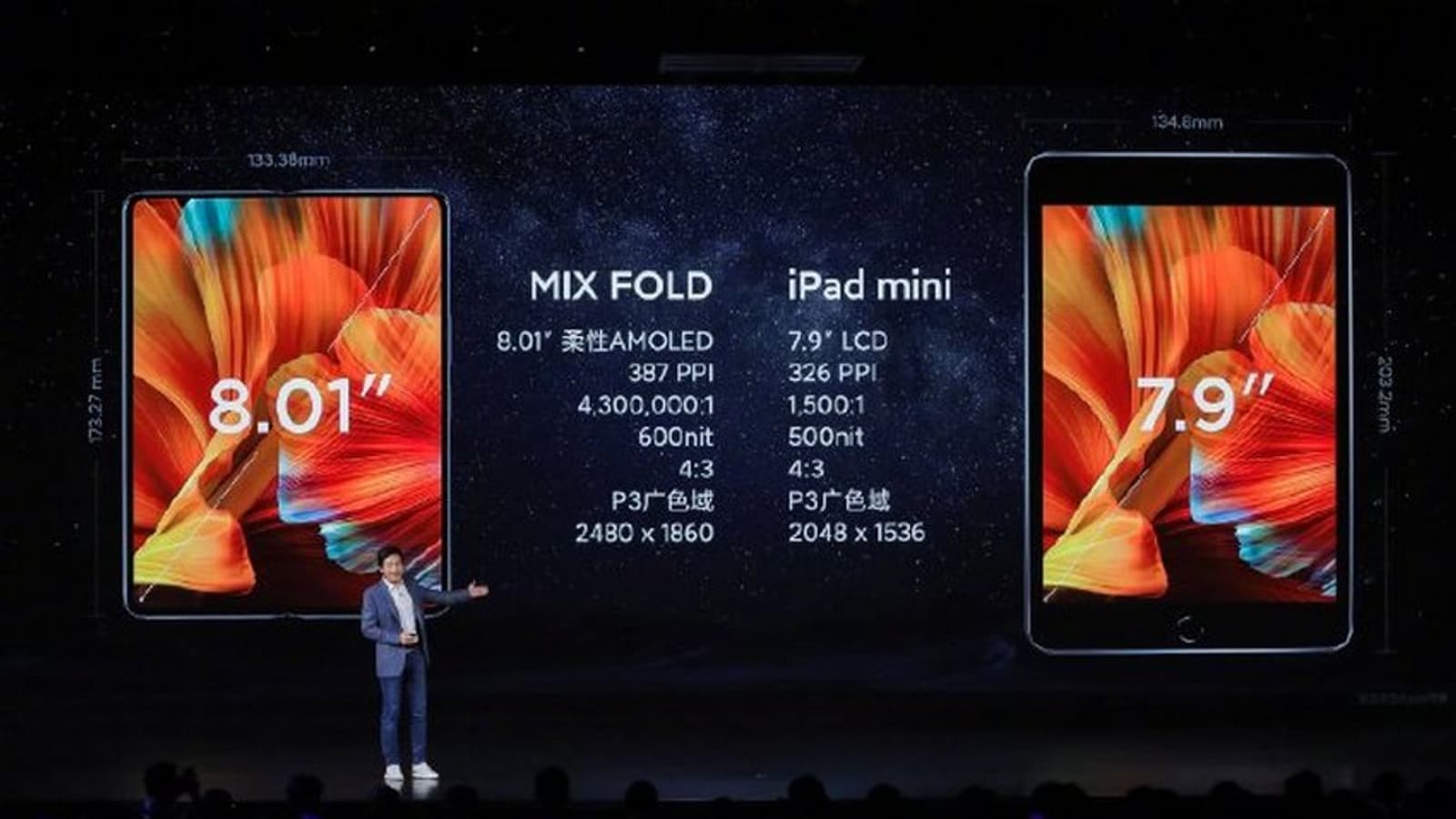 Генеральный директор компании Xiaomi Лей Цзюнь (Lei Jun) на своей страничке в социальной сети Weibo напомнил о скором выходе сгибающегося смартфона Xiaomi Mix Fold, а также опубликовал интересное изображение, на котором новинка сравнивается с планшетом iPad mini.