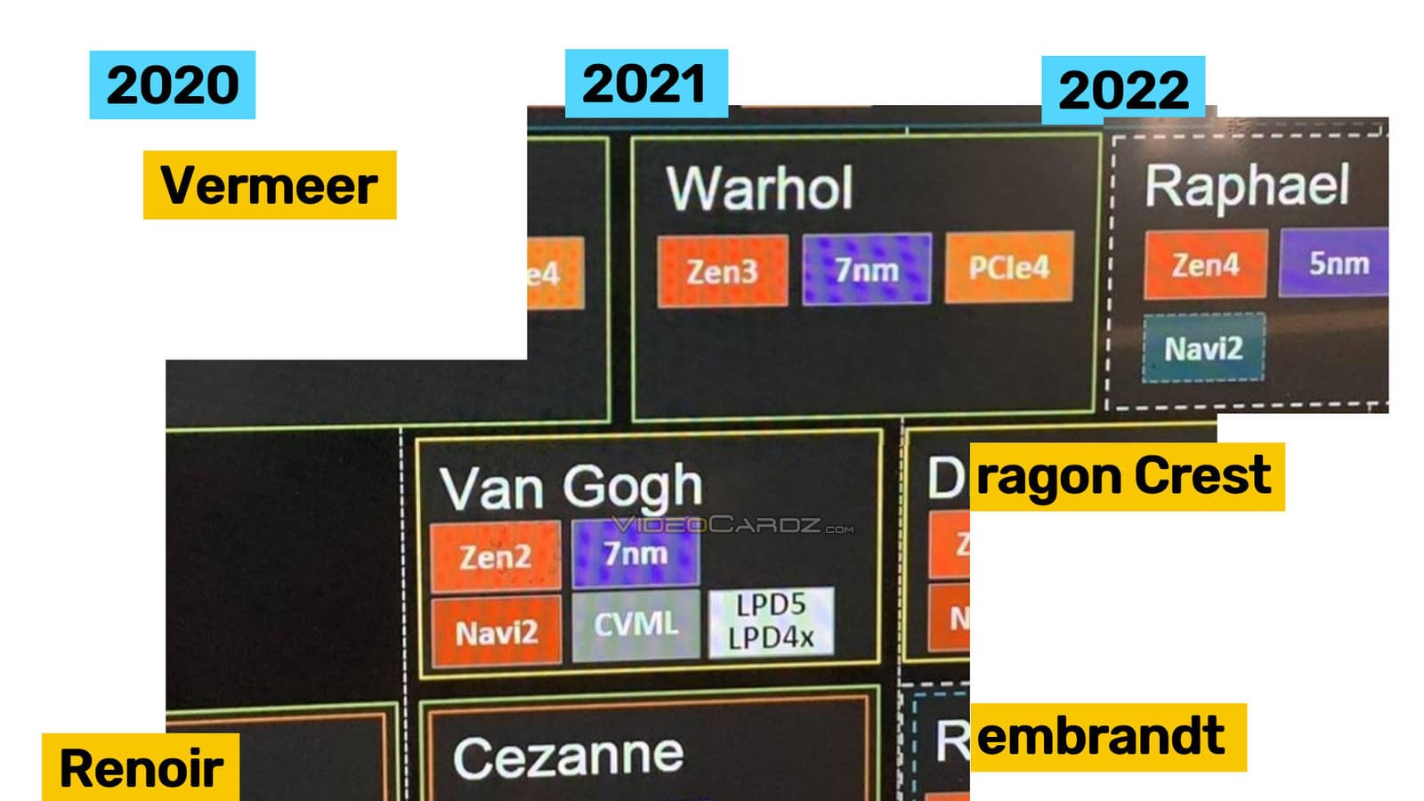 Что касается других процессоров AMD, тут у нас пока нет новых кусочков той же дорожной карты, но есть другая — собранная пользователем Twitter на основе имеющихся слухов и утечек.