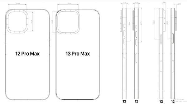 Как показано на втором изображении, iPhone 13 и iPhone 13 Pro сохранят квадратный блок камеры, только в iPhone 13 модули поменяли своё расположение, за счёт чего смартфон сразу можно будет отличить от iPhone 12. Сообщается, что все смартфоны линейки iPhone 13 получат дисплеи LTPO с адаптивной частотой обновления изображения до 120 Гц, однокристальную систему Apple A15 Bionic, а также поддержку Wi-Fi 6E.