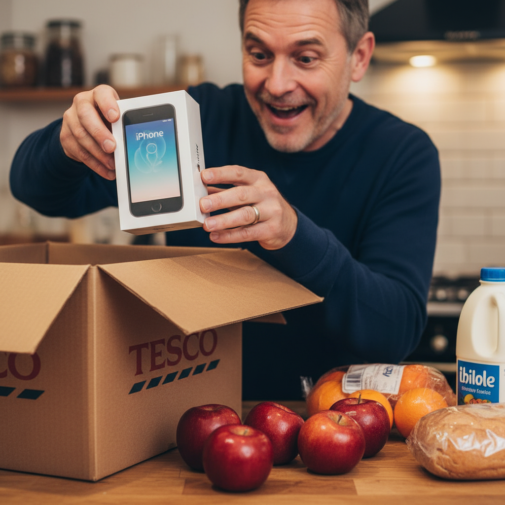 Клиент британской сети супермаркетов Tesco Ник Джеймс (Nick James) на прошлой неделе получил приятный сюрприз после того, как он оформил онлайн-покупку продуктов и получил их вместе со смартфоном iPhone SE.