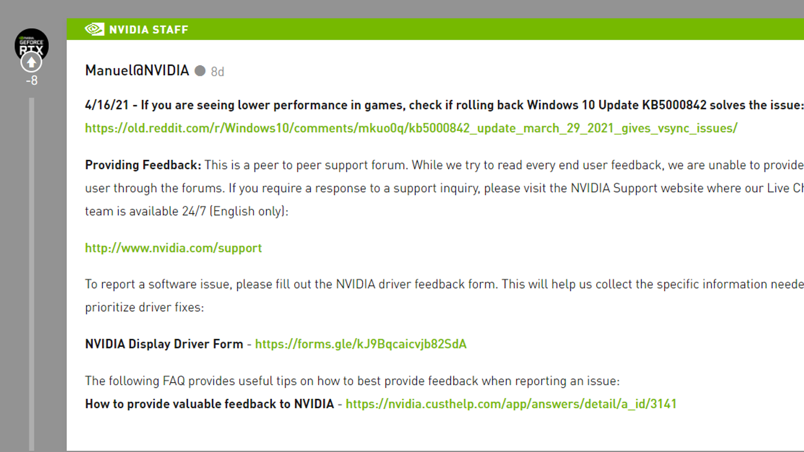 Пока Microsoft работает над исправлением всех бед, обусловленных обновлением, Nvidia рекомендует вовсе удалить его из системы — ради игр. Но, вероятно, и в случае всех вышеперечисленных проблем это тоже будет действенным методом их решения.