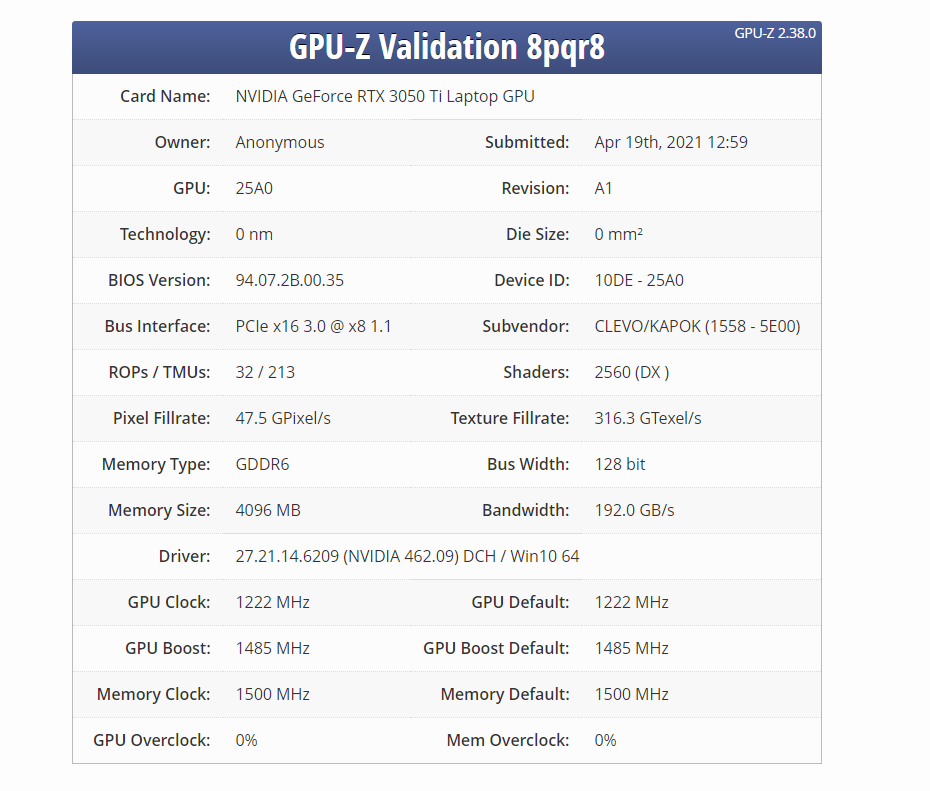 Характеристики видеокарты GeForce RTX 3050 Ti наконец-то подтверждены популярным приложением GPU-Z.