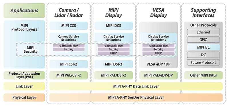 Новые спецификации основаны на MIPI A-PHY, первом отраслевом стандарте высокопроизводительного, высоконадежного асимметричного интерфейса SerDes, а также на ведущих протоколах отображения MIPI Display Serial Interface 2 (MIPI DSI-2), VESA Embedded DisplayPort и DisplayPort (VESA eDP/DP) для создания соединений между автомобильными дисплеями и электронными блоками управления (ECU).