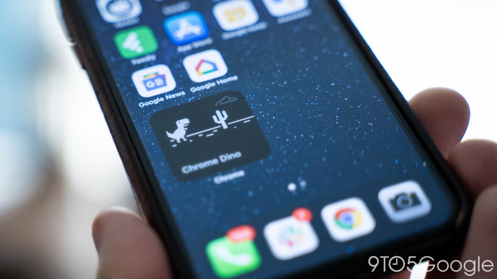 Второй вариант виджета 1 х 1 предоставляет быстрый доступ к поиску или адресной строке. И, наконец, доступен виджет с динозавриком Chrome Dino — хорошо известной по другим версиям Chrome игрой-пасхалкой. Все три виджета настраивают фон в зависимости от текущей темы.