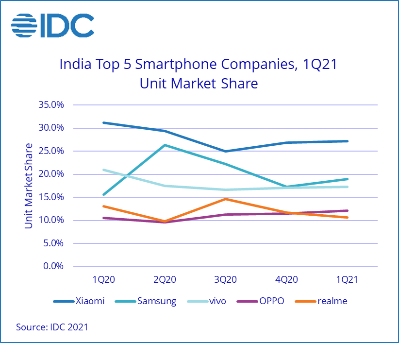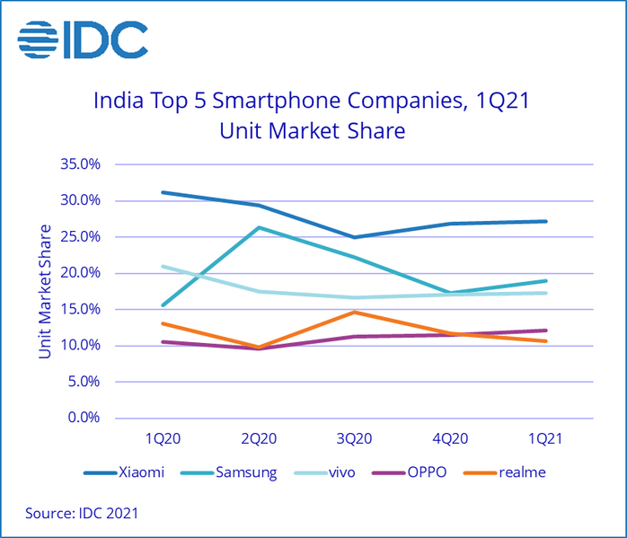 Как известно, Индия является вторым по величине рынком смартфонов в мире, уступая только Китаю. Аналитики IDC подвели итоги первого квартала и пришли к выводу, что индийский рынок начал год с уверенного роста. За квартал было продано 38 млн устройств, что на 18% больше показателя за аналогичный период прошлого года. Правда, по сравнению с четвёртым кварталом наблюдается спад на 14%, но это связано с тем, что на четвёртый квартал традиционно приходится наибольший подъём спроса.