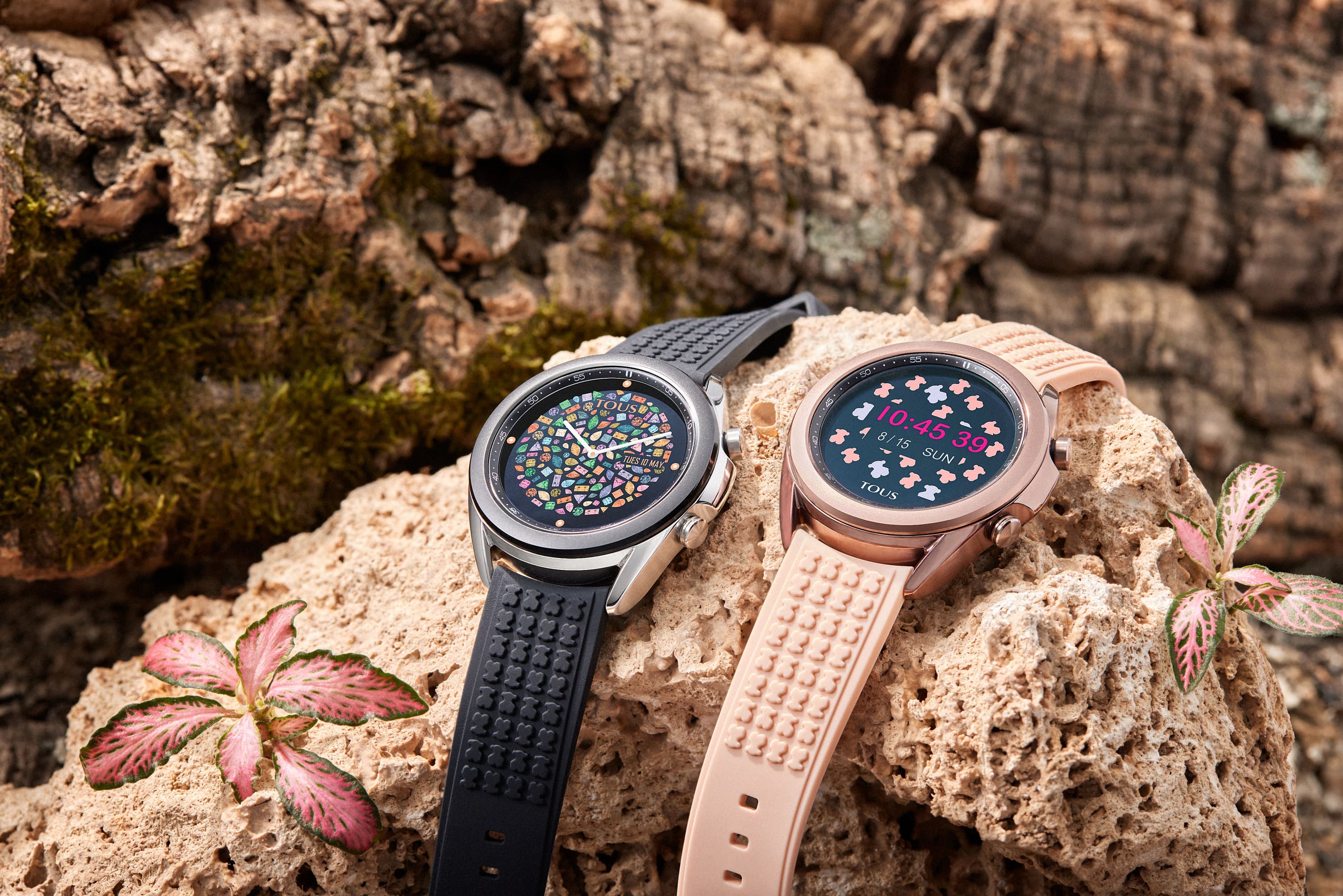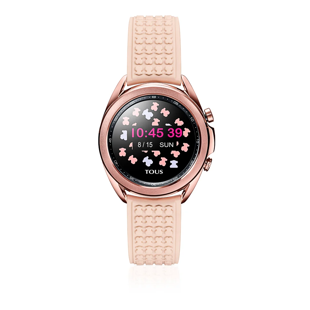 Новые Galaxy Watch 3 Tous доступны в чёрном и золотисто-розовом вариантах корпуса и с соответствующими ремешками. В основу легла 41-мм версия часов с немного изменённым дизайном. Ремешки используются силиконовые, но в необычной отделке с десятками небольших логотипов Tous. Кроме того, часы могут похвастаться специально созданным для них набором циферблатов.