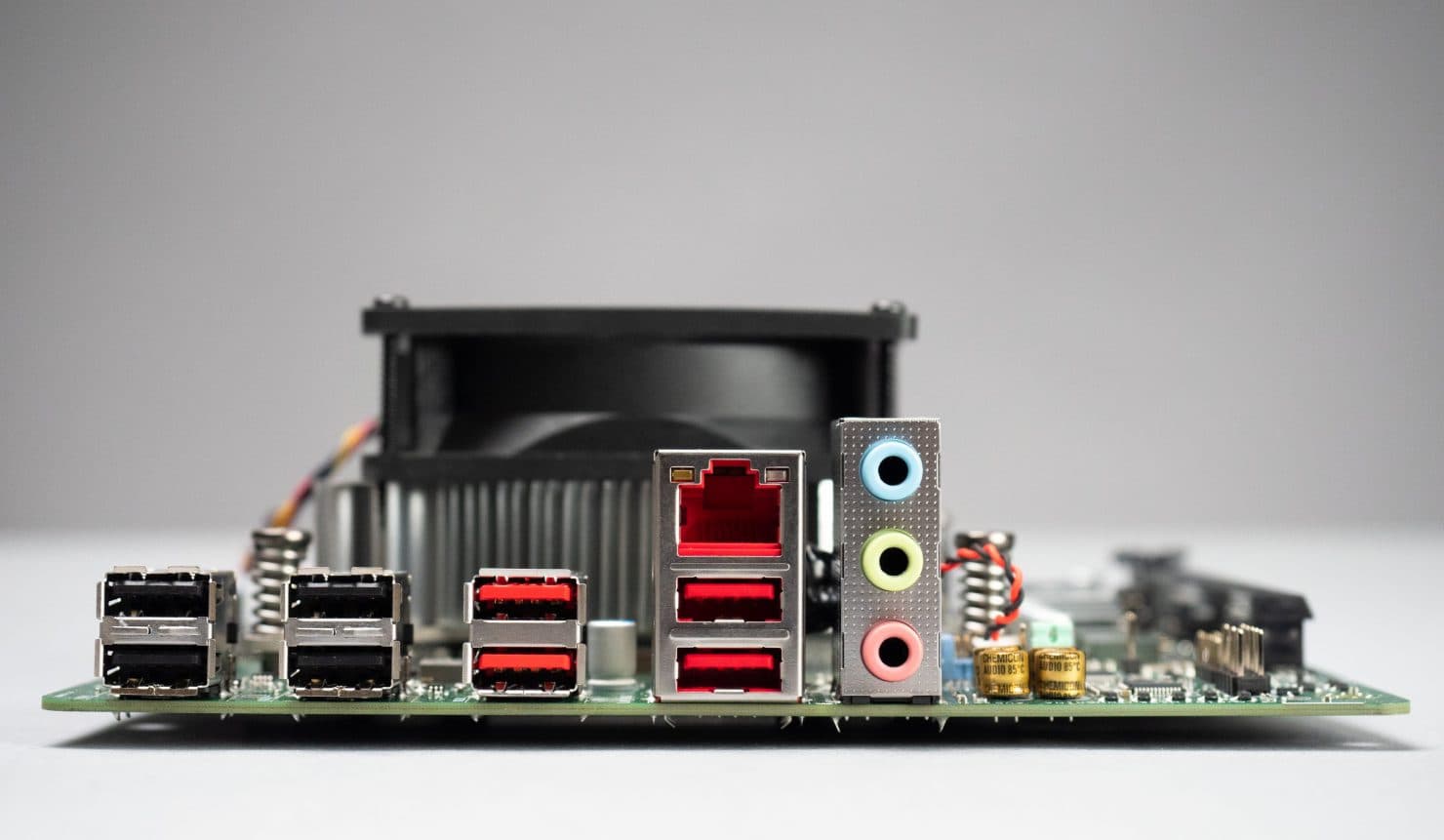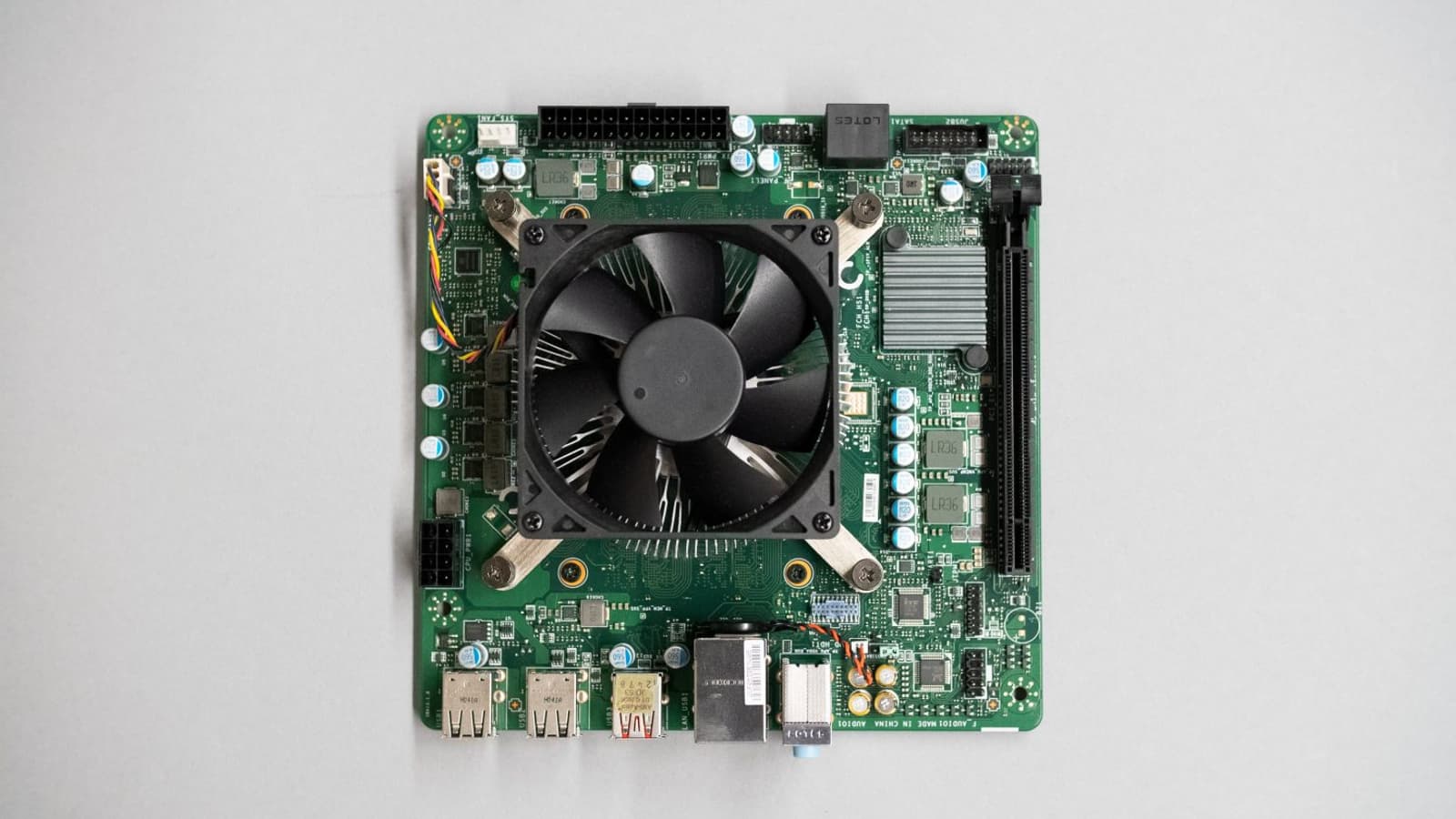 А так выглядит системная плата, которую можно купить как в составе готового ПК, так и отдельно (вместе с APU). Пока, к сожалению, нет фотографий с демонтированным кулером, но и без этого есть, на что посмотреть.