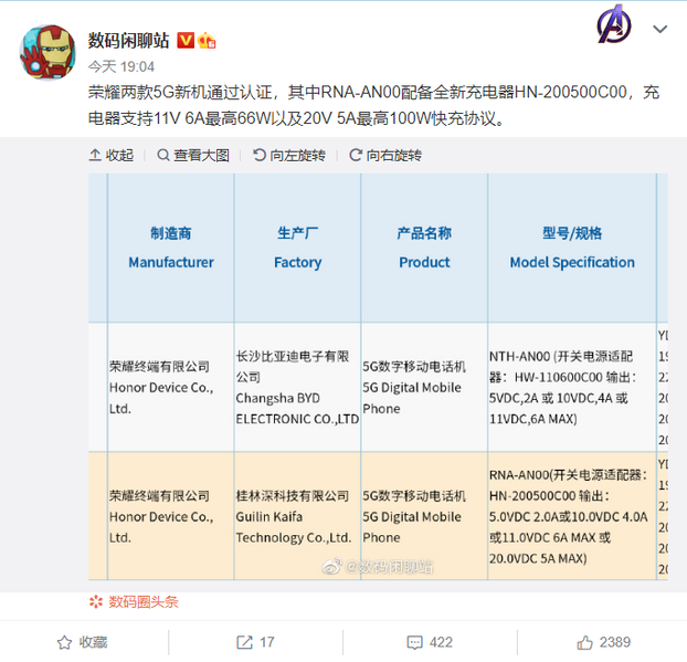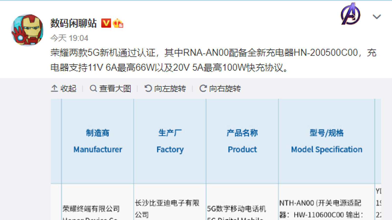 NTH-AN00 поддерживает зарядку мощностью 66 Вт (11 В 6 А), а RNA-AN00 и вовсе способен «переварить» 100 Вт (20 В 5 А). Раз уж речь о моделях новой флагманской линейки Honor, то первый, вероятно, является Honor 50, а второй — Honor 50 Pro+.