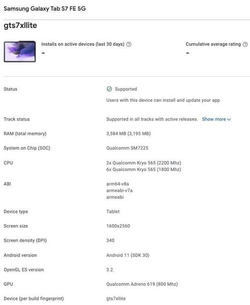На это указывает появление такой модели в консоли Google. Планшеты с каталожными номерами SM-T737 и SM-T736B выйдут под названием Galaxy Tab S7 FE, а разница будет в наличии модема 5G.