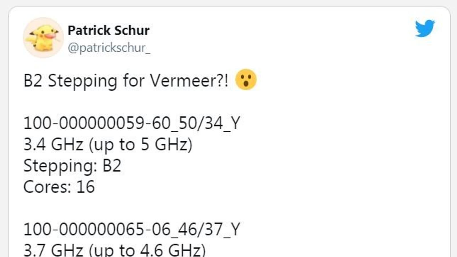 В сети появилась информация о двух процессорах AMD, которые, предположительно, относятся к степпингу B2 серии Ryzen 5000 (Vermeer). По предварительным данным, это 16-ядерный процессор с базовой тактовой частотой 3,4 ГГц и повышенной частотой 5,0 ГГц и 6-ядерный процессор с базовой тактовой частотой 3,7 ГГц и повышенной 4,6 ГГц. Первый, похоже, станет обновлением модели Ryzen 9 5950X, а второй — Ryzen 5 5600X.