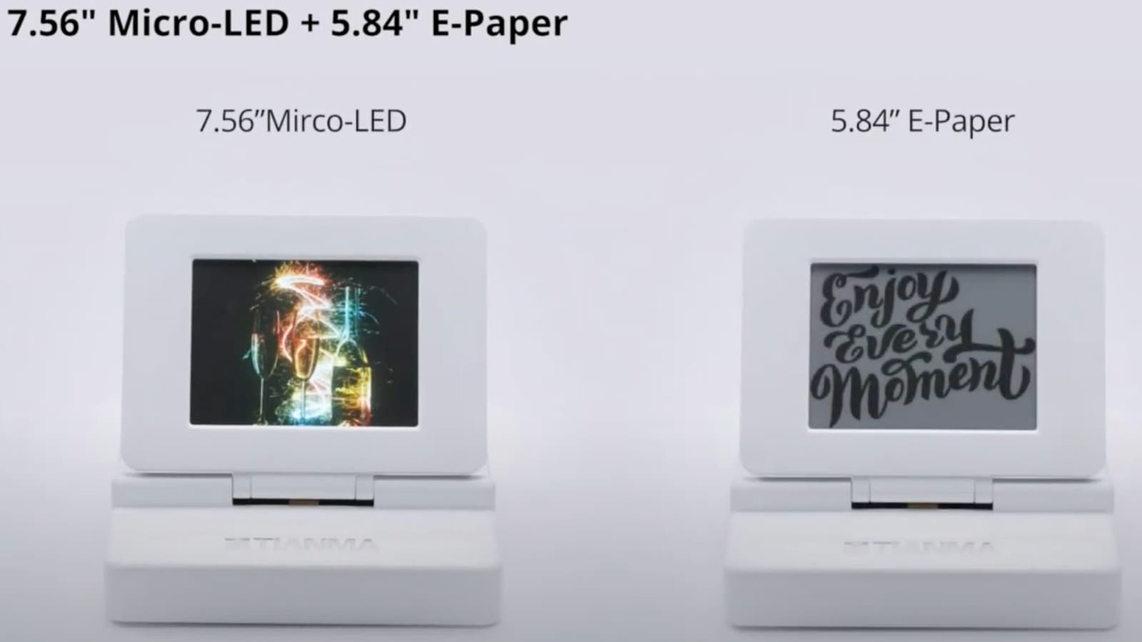 Первым из них был гибкий дисплей micro-LED размером 7,56 дюйма и разрешением 720 x 480 пикселей, разработанный в сотрудничестве с PlayNitride. Дисплей с управляющей платой, изготовленной по технологии LTPS, характеризуется плотностью 114 пикселей на дюйм и яркостью более 600 кд/м2. Он может быть изогнут по радиусу 50 мм.
