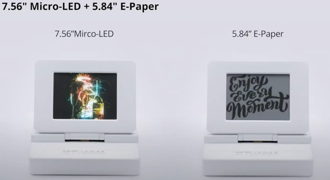 Третий прототип интересен тем, что в нем прозрачный дисплей micro-LED размещен поверх электрофоретического дисплея. Размер дисплея LTPS micro-LED, разработанного вместе с PlayNitride, равен 7,65 дюйма, разрешение — 480 x 720 пикселей (плотность — 114 пикселей на дюйм). Электрофоретический дисплей размером 5,84 дюйма и разрешением 648 x 480 (плотность — 138 пикселей на дюйм) создан в сотрудничестве с WeiFeng.