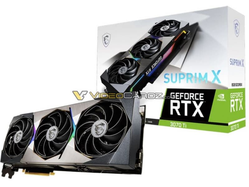 Как выглядит GeForce RTX 3080 Ti, мы уже знаем, а сейчас — рендеры двух моделей MSI на базе GeForce RTX 3070 Ti. Одна относится к линейке Suprim, вторая — к серии Ventus. Обе оснащены большими кулерами с тремя вентиляторами, построены на графическом процессоре GA104-402 с 6144 ядрами CUDA, аппаратной защитой от майнинга и 8 ГБ памяти GDDR6X. Собственно, в этом и состоят ключевые отличия характеристик от обычной GeForce RTX 3070, у которой 5888 ядер CUDA, нет защиты от майнинга и 8 ГБ памяти GDDR6.