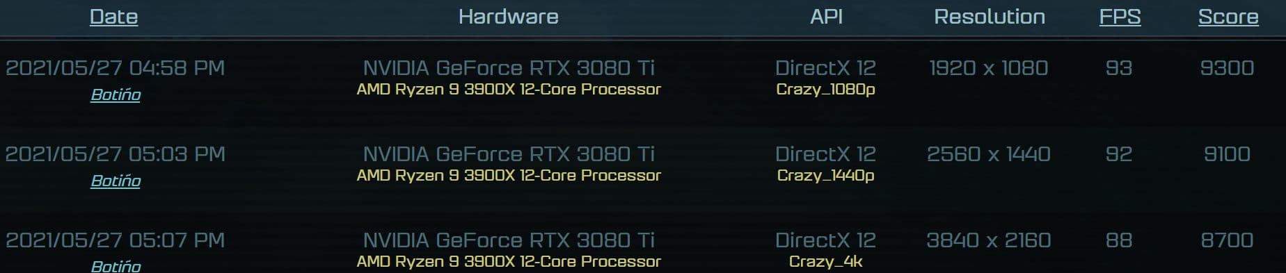 Вчера GeForce RTX 3080 Ti засветилась в бенчмарке Geekbench, где выступила примерно на уровне RTX 3090. Сегодня данный адаптер впервые показал себя в игровом бенчмарке.