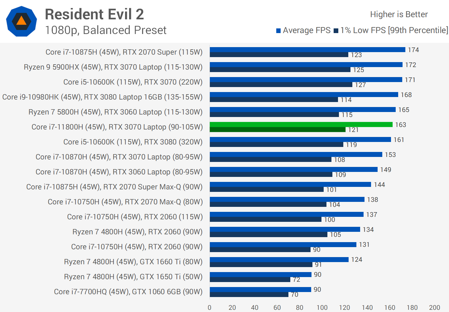 В играх в Full HD с мобильной видеокартой GeForce RTX 3070 новый процессор Intel показывает себя отлично. Он зачастую быстрее любого текущего CPU AMD и любого предшественника. При этом, как обычно, почти всегда разница от смены процессора не особо существенна.