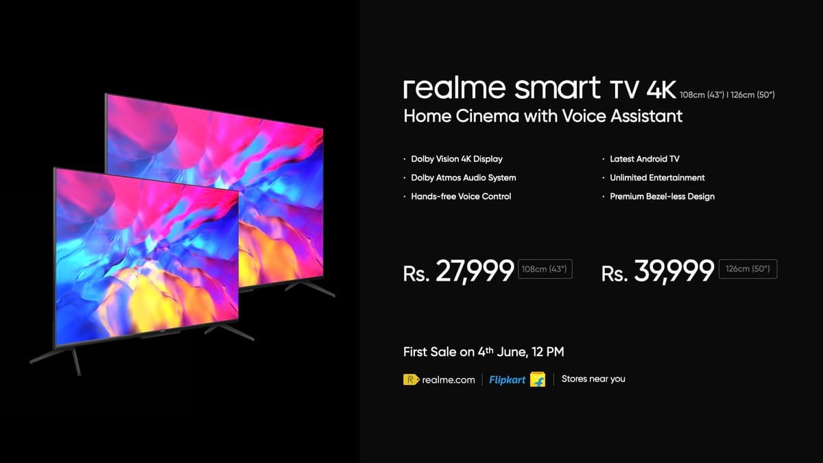 Вместе со своим новым флагманским смартфоном Realme представила телевизоры Smart TV 4K, которые доступны с экранами диагональю 43 и 50 дюймов. Дисплеи поддерживают отображение 1,07 миллиарда цветовых оттенков, расширенный динамический диапазон Dolby Vision, охватывают 83% цветовой гаммы NTSC и имеют углы обзора 178 градусов.