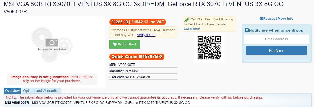 Nvidia сегодня официально представила видеокарту GeForce RTX 3070 Ti. Она немного быстрее обычной GeForce RTX 3070, но и чуть дороже — 600 долларов вместо 500. Правда, это если говорить о рекомендованный ценах, а в реальности картина куда печальнее. Так, один из онлайновых магазинов Великобритании уже предложил три варианта GeForce RTX 3070 Ti производства MSI. Самый доступный — в три раза дороже рекомендованной стоимости.