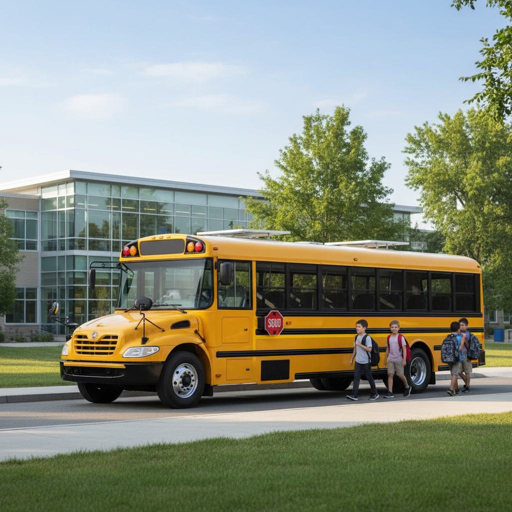 Что касается безопасности, автобус наделён системой электронного контроля устойчивости для облегчения управления, системой предотвращения столкновений и системой кругового обзора для обнаружения пешеходов и велосипедистов, когда автобус движется на малых скоростях. Кроме того, дополнительный уровень защиты детей, выходящих из автобуса, обеспечивает складной знак Predictive Stop Arm, который во время остановок не только предупреждает водителей других транспортных средств о том, что на дороге могут появиться дети, но и отслеживает приближающийся транспортный поток, чтобы уведомить учащихся, когда переходить дорогу может быть небезопасно. Автобусы могут быть оснащены трёхточечными плечевыми ремнями, встроенными детскими сиденьями и переносными удерживающими устройствами.