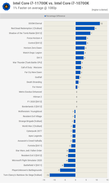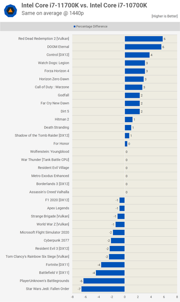 Что касается двух CPU Intel, тут, что интересно, имеем паритет. В зависимости от игры чуть быстрее тот или иной CPU, и это не очень хорошо для нового Core i7-11700K.