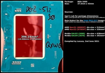 Новый GPU Intel больше, чем решения AMD или Nvidia. GPU DG2-512 оказался крупнее Navi 22 и GA104
