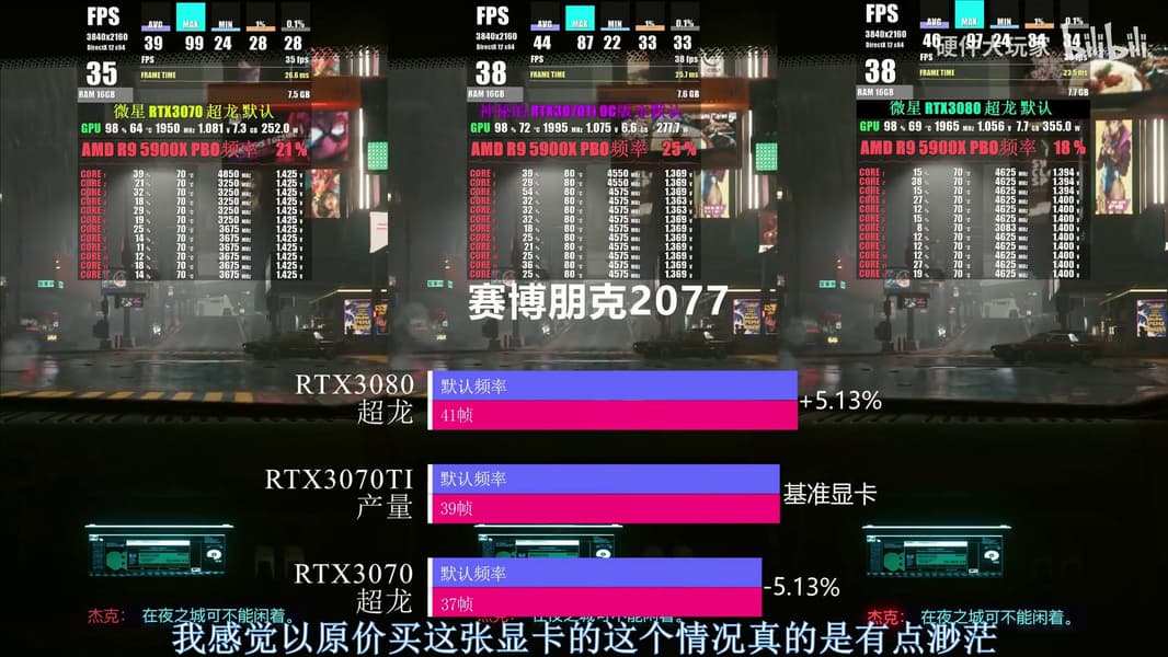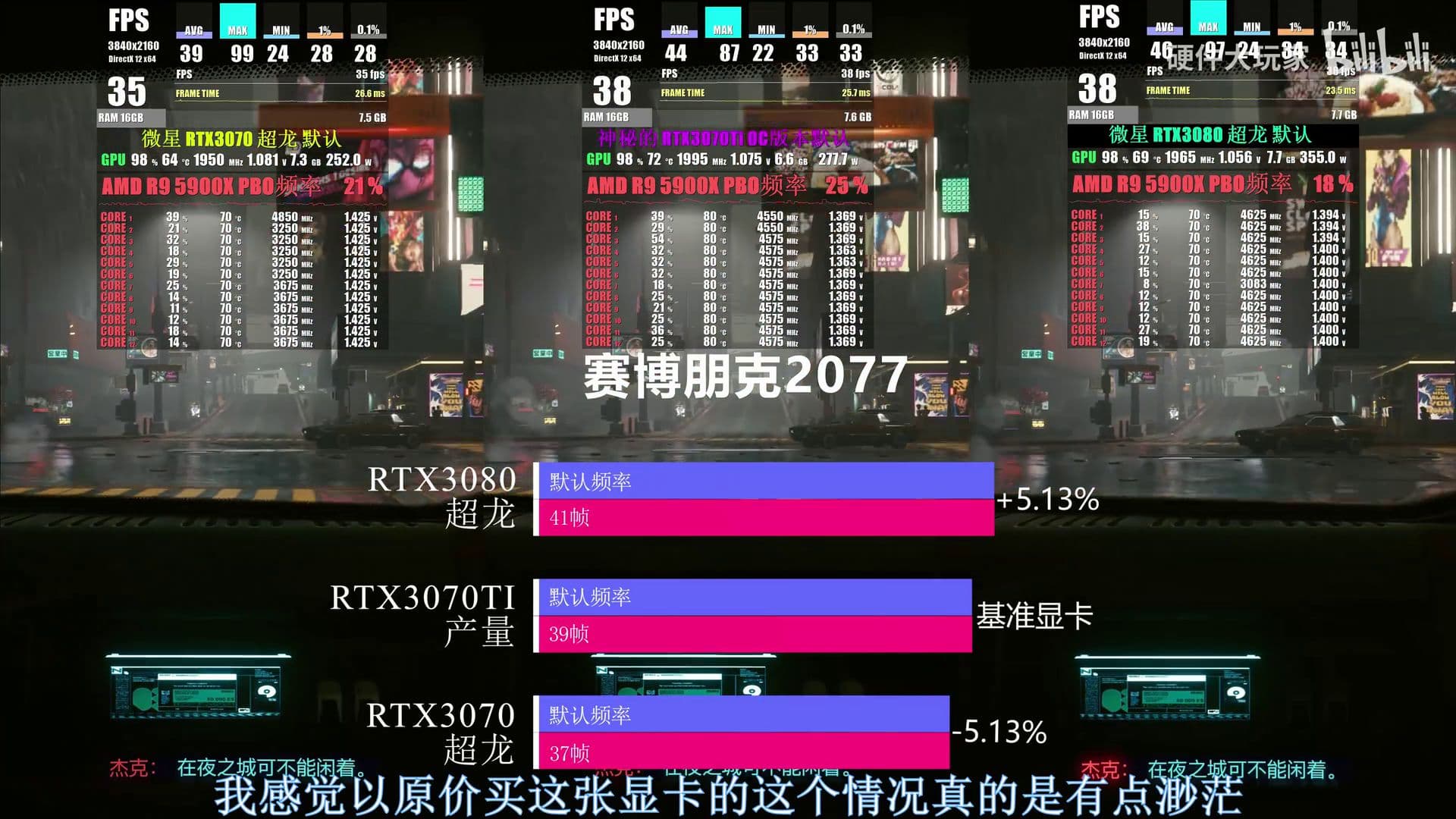Что же касается игр, карта ожидаемо превосходит RTX 3070, но зачастую некритично. Там, где RTX 3080 намного быстрее RTX 3070, новинка намного ближе ко второй. Там же, где разница между первыми невелика, то и RTX 3070 Ti не особо отличается от обеих. В итоге можно рассчитывать на прирост в пределах 5–10%. Учитывая идентичный объём памяти, глобально особой разницы между RTX 3070 и RTX 3070 Ti зачастую нет.