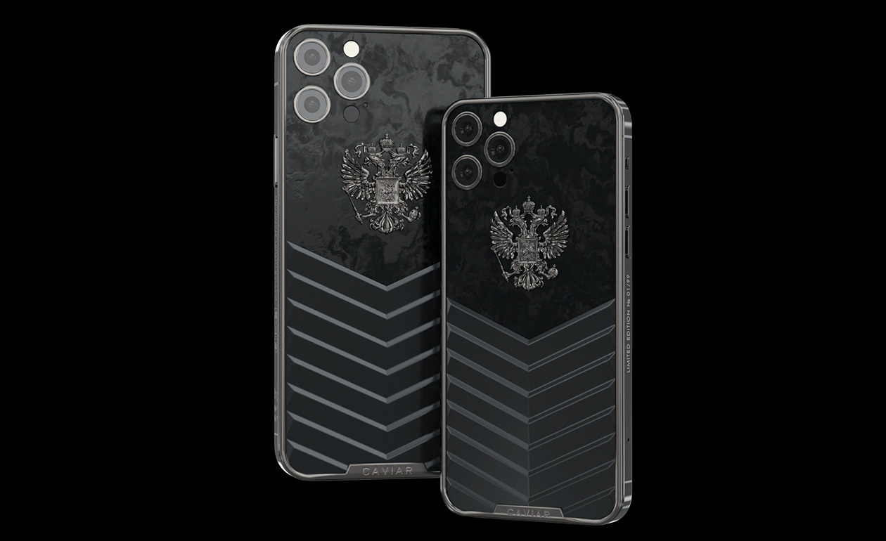 Самой оригинальной в серии стала, пожалуй, модель Caviar Tourbillon Россия. В этом варианте отделки используется титан и золотое покрытие. Кроме того, на корпусе разместились часы с турбийоном, выполненные по специальному заказу для Caviar, и герб России — двуглавый орёл. Цена на такой iPhone стартует от 644 000 рублей, всего будет выпущено 99 экземпляров.