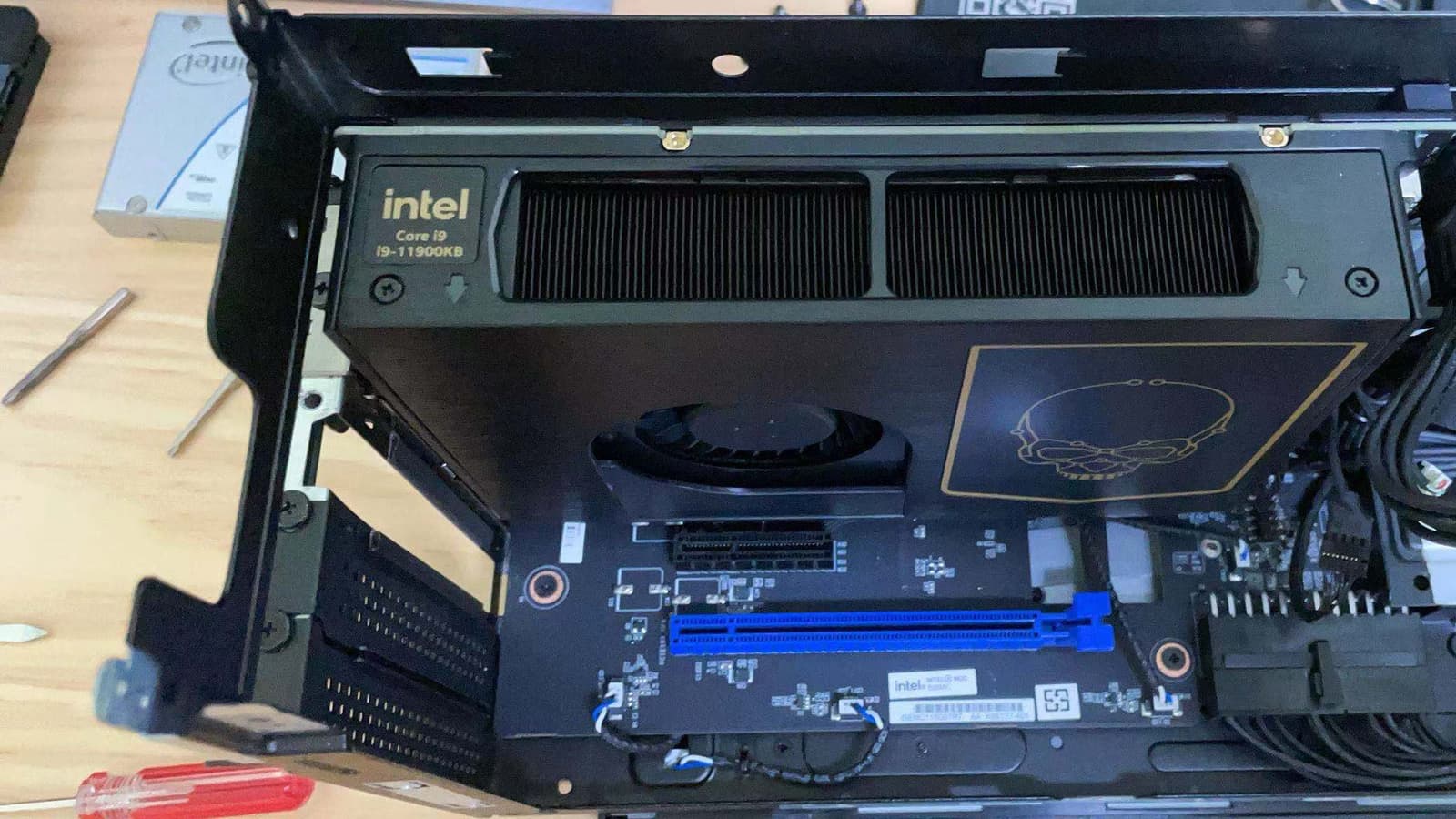 Несмотря на то, что в документах там значатся Core-H, то есть исключительно мобильные CPU, свежее фото показывает, что сердцем одной из модификаций служит Core i9-11900KB.