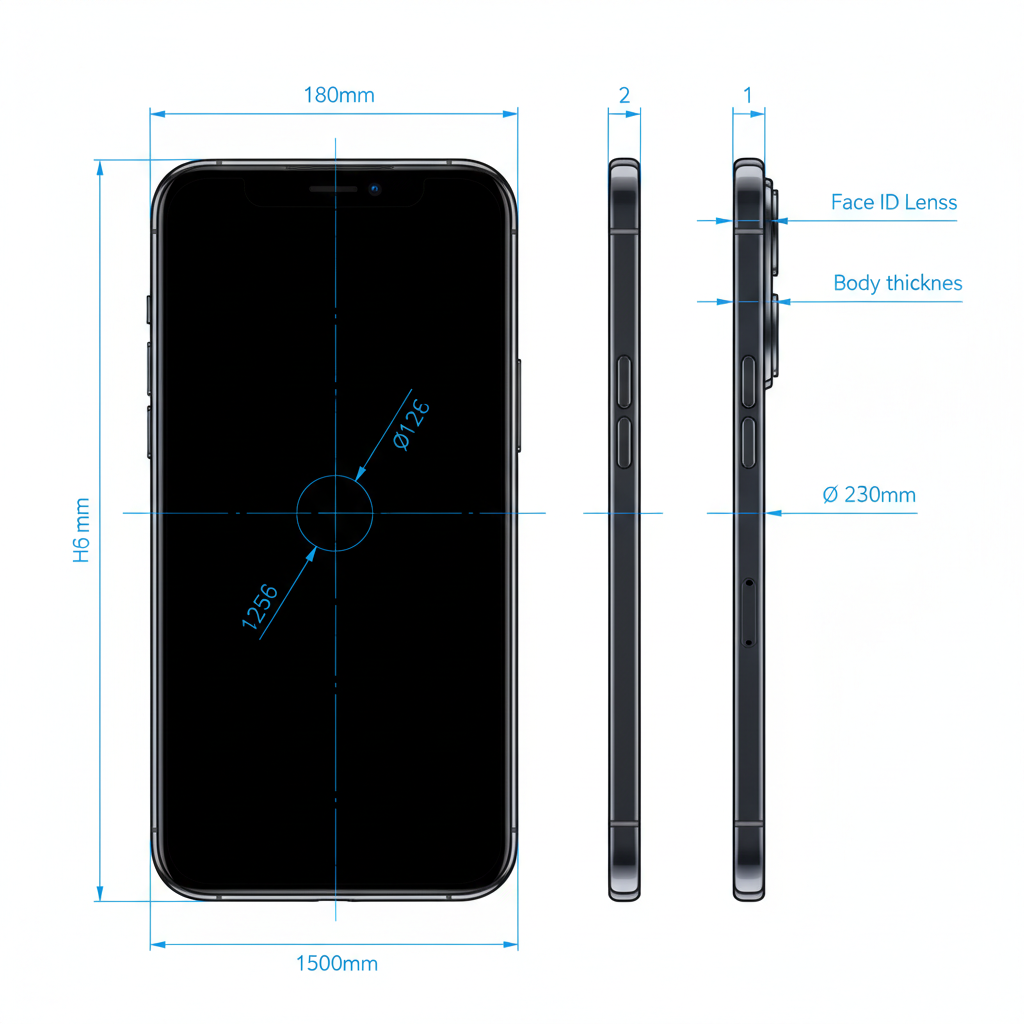 Китайские источники слили часть чертежа смартфона iPhone 13 Pro с указанием точных размеров толщины устройства, его ширины, а также диаметра объективов.