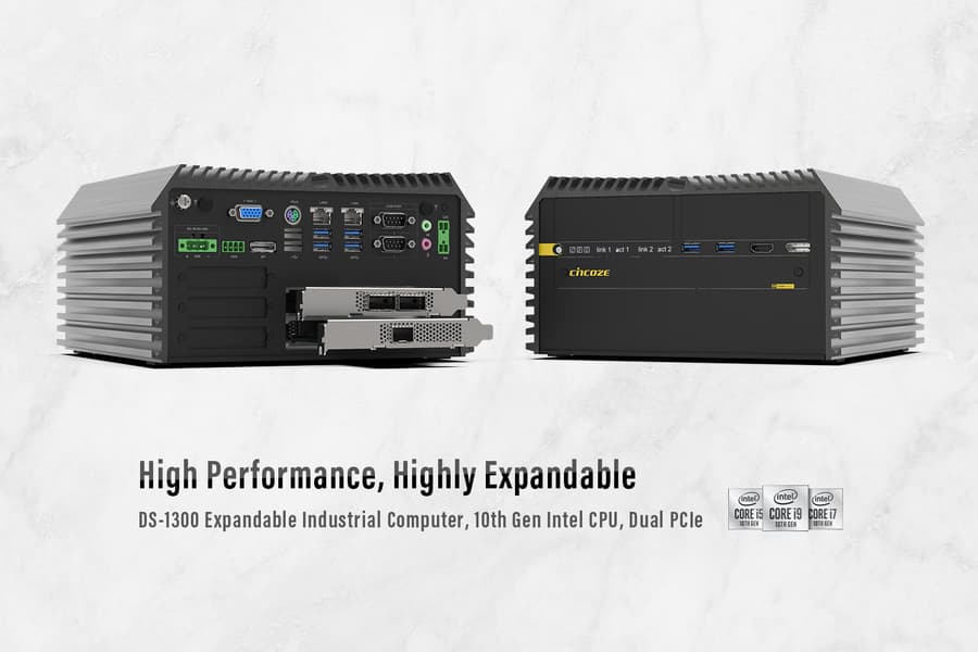 Компания Cincoze, специализирующаяся на защищенных встраиваемых компьютерах, анонсировала первый высокопроизводительный промышленный компьютер на процессорах Intel Xeon, Core 10-го поколения, располагающий слотами расширения. Он предложен как серия из трех моделей: DS-1300, DS-1301 и DS-1302, которые различаются количеством слотов расширения. По словам производителя, новинка особенно хорошо подходит для развертывания в промышленном оборудовании, средствах AIoT и автоматизации логистики, коботах и приложениях, требующих высокой вычислительной мощности в суровых условиях.