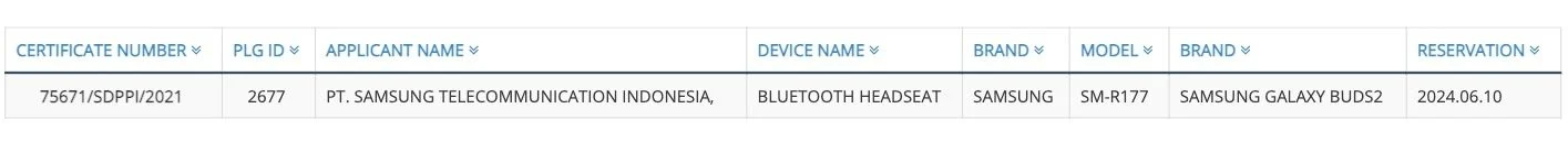 Модельный номер наушников уже был известен — SM-R177, однако теперь вполне официальный источник подтвердил то название, по которым устройство появится на полках магазинов. Наушники SM-R177 прошли сертификацию индонезийского регулятора и в документации прямо указано название — Samsung Galaxy Buds 2.