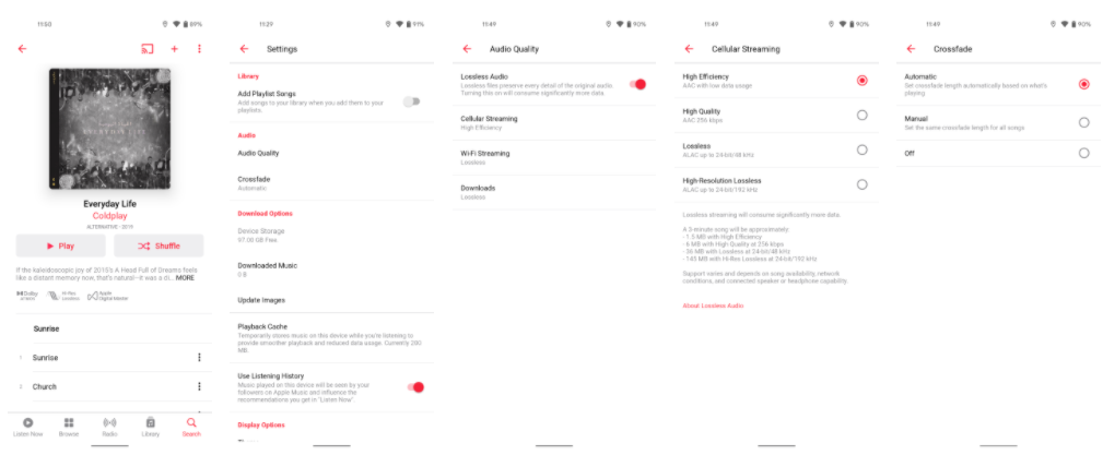 Помимо повышения качества звука, Apple Music для Android теперь предлагает автоматическое перекрёстное затухание треков в дополнение к существующей опции «Вручную», также были внесены улучшения в библиотеку, включая поиск.