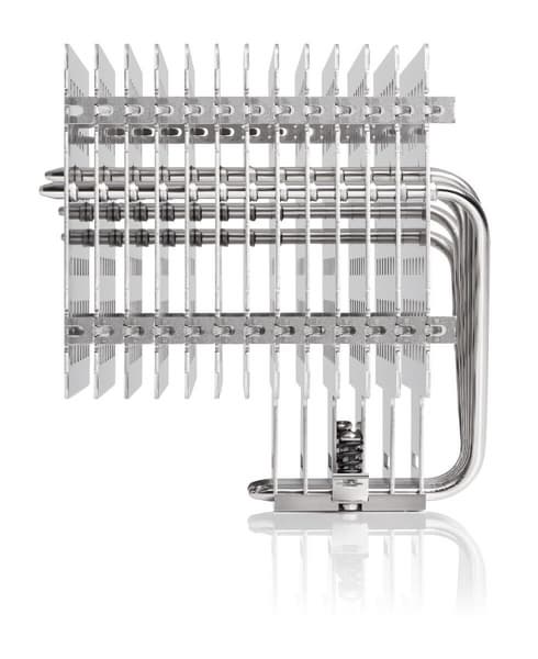 NH-P1 — это не просто обычный радиатор без вентилятора: у него гораздо более толстые и широко разнесённые ребра, за счёт чего обеспечивается большая масса и минимальное сопротивление воздушному потоку, необходимые для эффективного охлаждения с естественной конвекцией.