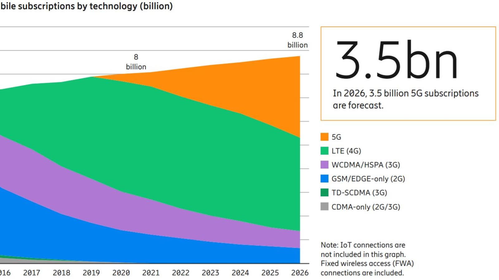 В частности, прогнозируется рост числа подключений 5G. В Ericsson ожидают, что к уже концу текущего года их будет 580 млн, а в 2026 году — более 3,5 млрд. Для сравнения: в прошлом году в мире насчитывалось 220 млн пользователей сетей 5G.