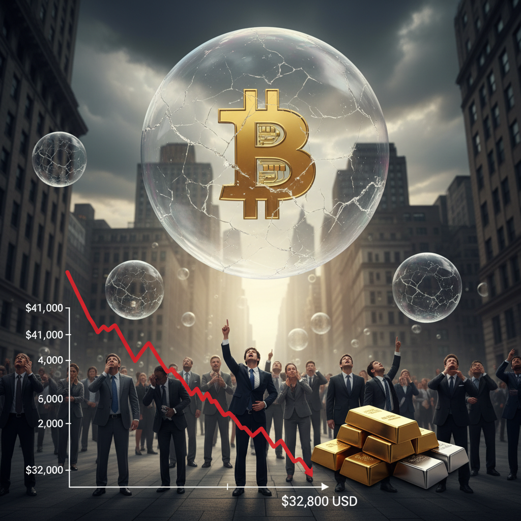 На момент публикации заметки курс биткойна опустился до 32,8 тыс. долларов.