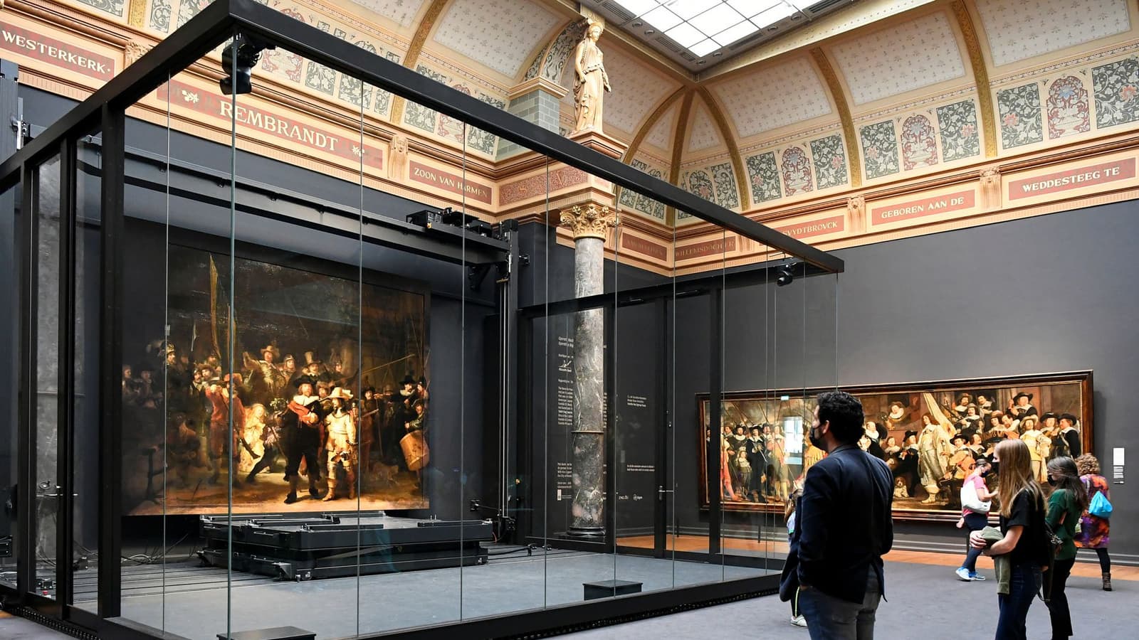 Впервые за 300 лет знаменитая картина Рембрандта «Выступление стрелковой роты капитана Франса Баннинга Кока и лейтенанта Виллема ван Рёйтенбюрга» снова демонстрируется в первоначальном размере.