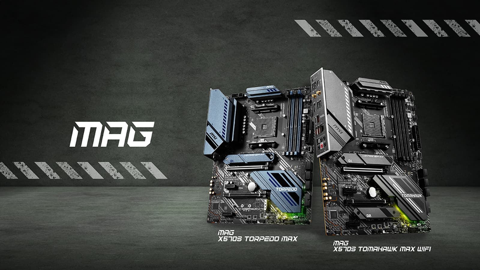 Новых платы — две: MAG X570S TOMAHAWK MAX WIFI и MAG X570S TORPEDO MAX. Внешне они оформлены одинаково, в военном стиле, но для MAG X570S TORPEDO MAX выбрана цветовая гамма Pacific Blue, по словам MSI, пользующаяся большой популярностью у поклонников продукции марки. Одной из общих черт MAG X570S TOMAHAWK MAX WIFI и MAG X570S TORPEDO MAX является радиатор M.2 Shield Frozr, призванный отводить тепло от накопителя, установленного в слот M.2.