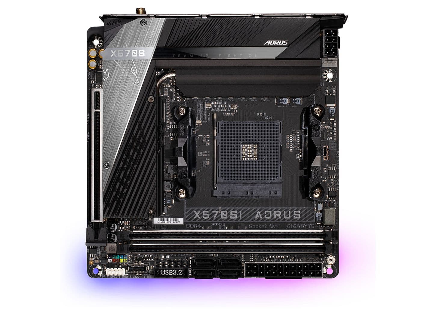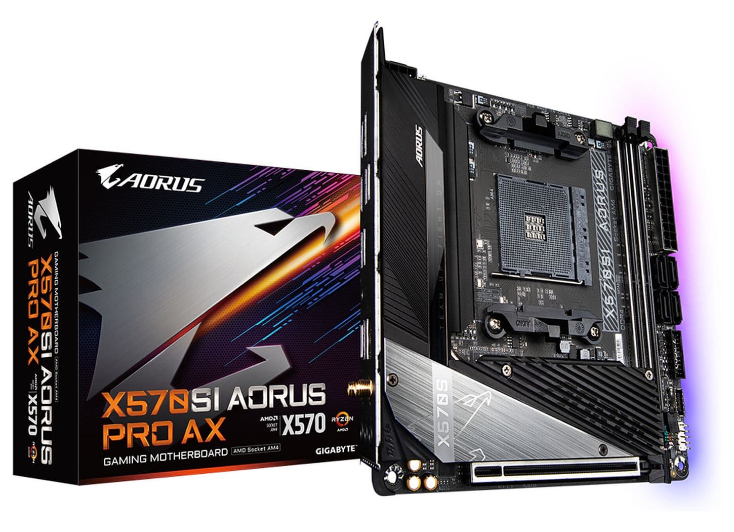 Эта плата поддерживает широкий спектр процессоров AMD в исполнении AM4, включая серии Ryzen 5000, 3000 и 2000, а также память до DDR4-5100. Возможно использование APU, для чего есть видеовыходы HDMI 2.0 и DisplayPort 1.2. В целом плата очень похожа на свою предшественницу, X570I Aorus Pro WiFi.