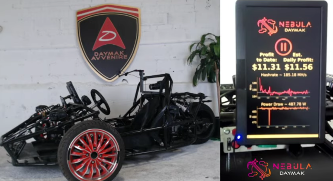 Компания Daymak запустила прямую трансляцию процесса майнинга криптовалюты на электромобиле Spiritus.