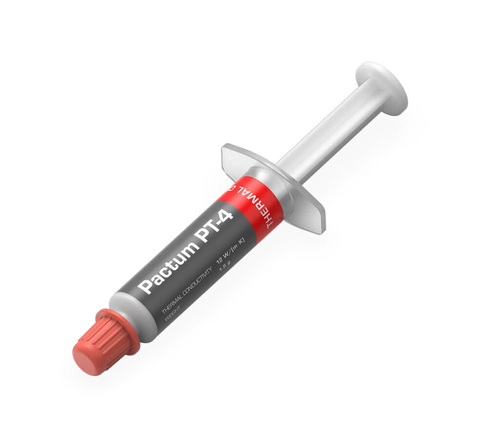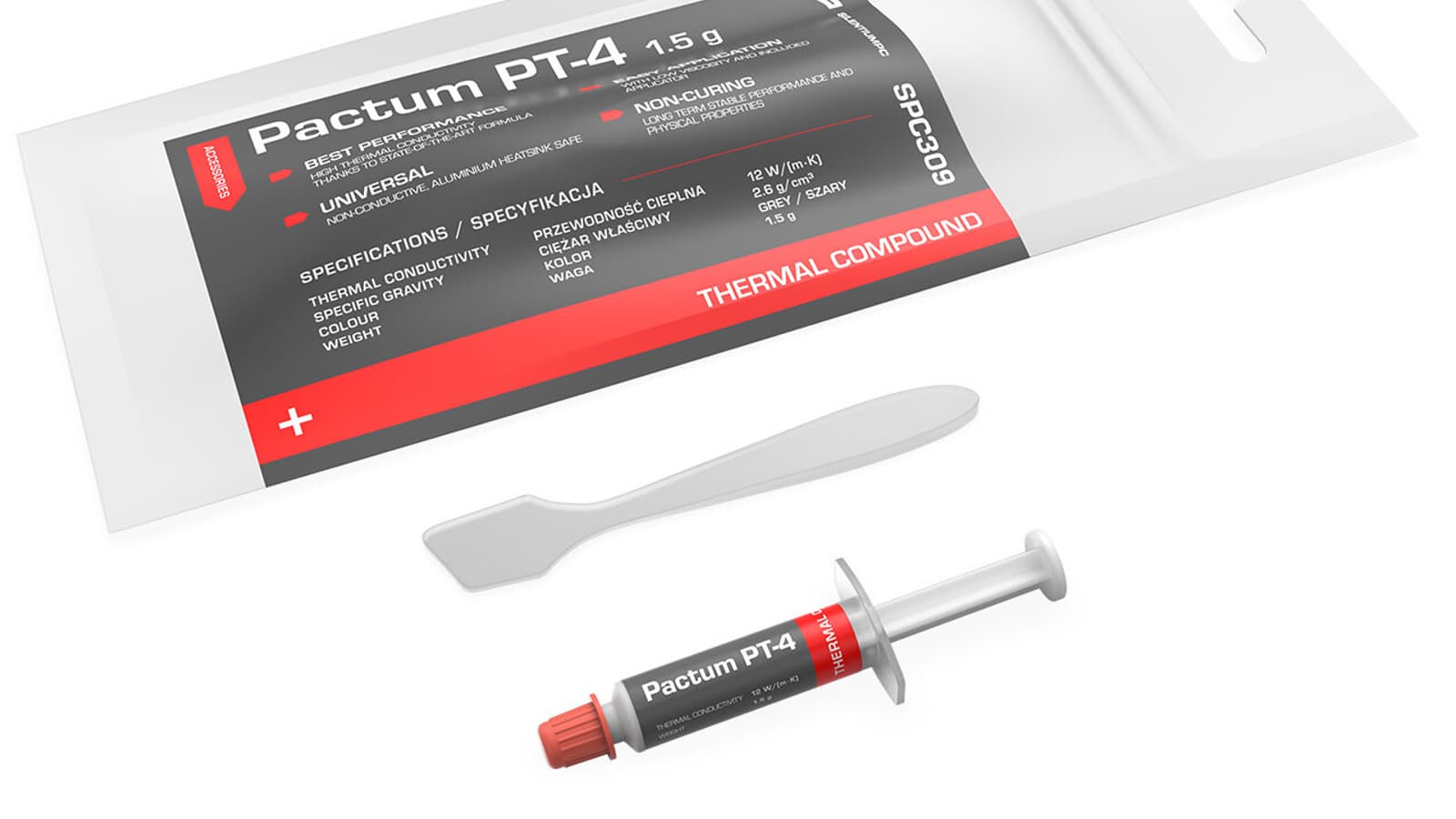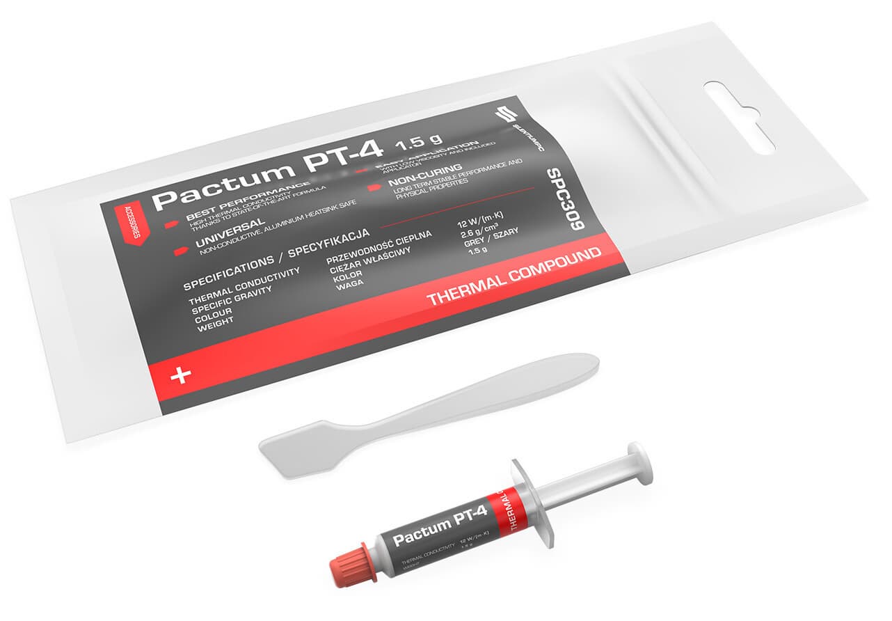 Ассортимент компании SilentiumPC пополнила термопаста Pactum PT-4. Ключевым преимуществом Pactum PT-4 производитель называет высокий коэффициент теплопроводности, равный 12 Вт/(м·К). Получить такое высокое значение позволил усовершенствованный состав на основе соединений цинка и алюминия.