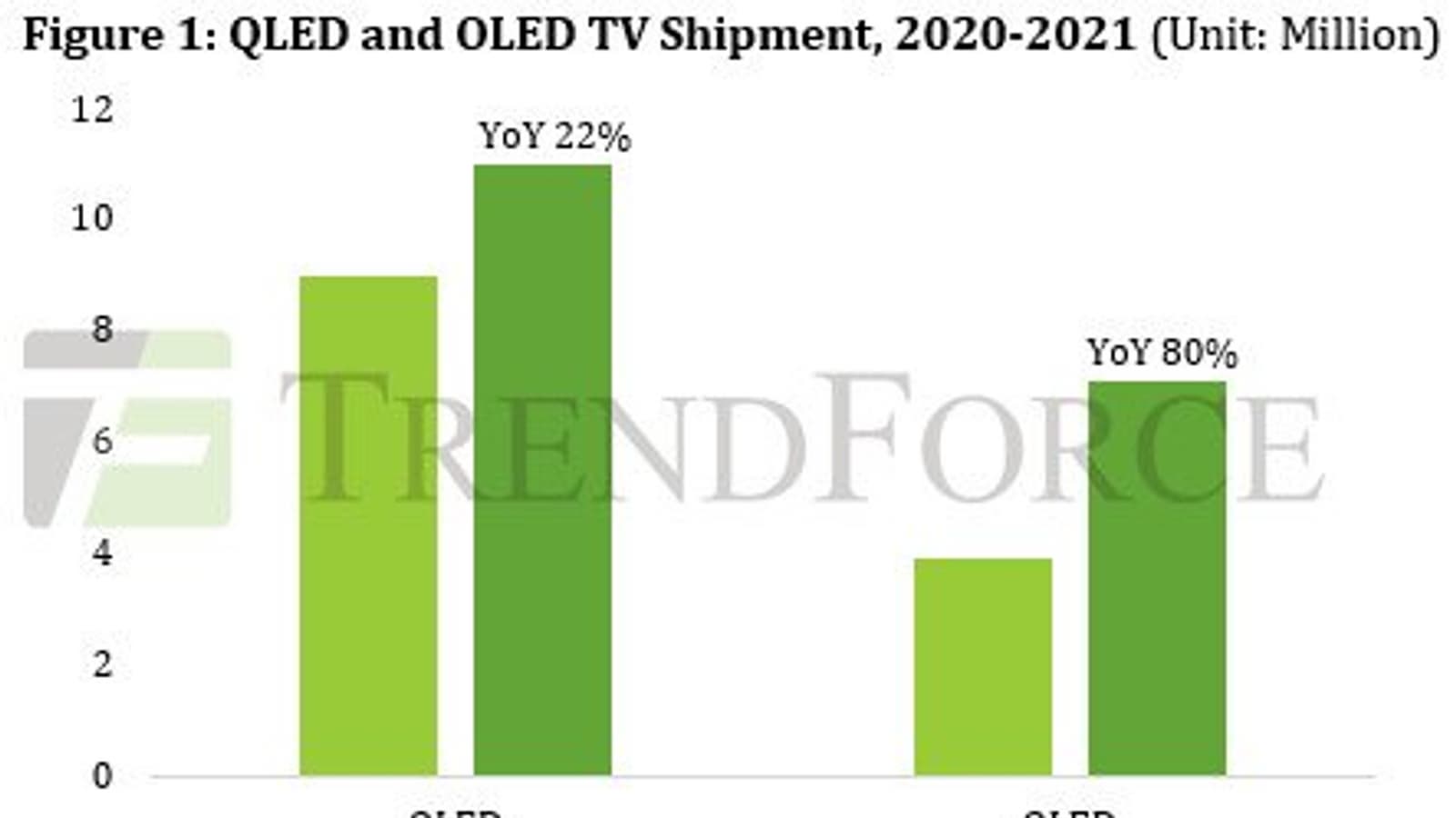 Продолжающийся рост цен на телевизионные панели, а также дефицит полупроводниковых компонентов для телевизоров и вызванный этим рост цен на них вынудили телевизионные бренды в 2021 году сократить поставки моделей малого и среднего размера в пользу более прибыльных крупногабаритных телевизоров среднего и высокого класса. В этом уверены специалисты аналитической компании TrendForce. Они ожидают, что указанное изменение приведёт к увеличению поставок телевизоров QLED в 2021 году до 11,02 млн единиц или на 22,4% по сравнению с прошлым годом. С другой стороны, ожидается, что отгрузка телевизоров OLED в 2021 году достигнет 7,1 млн единиц, что на 80% больше по сравнению с прошлым годом. Таким образом, ожидается, что в этом году поставки телевизоров с экранами QLED и OLED будут рекордно высоки.